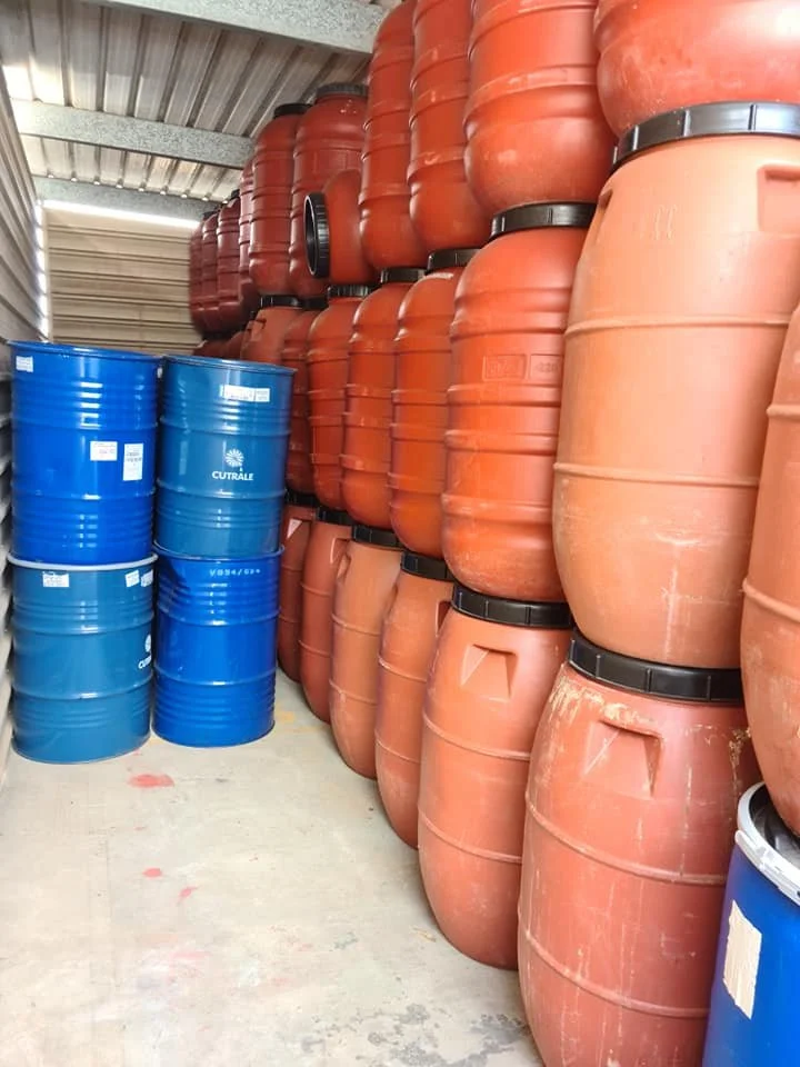 Plastic and steel drums are also available.